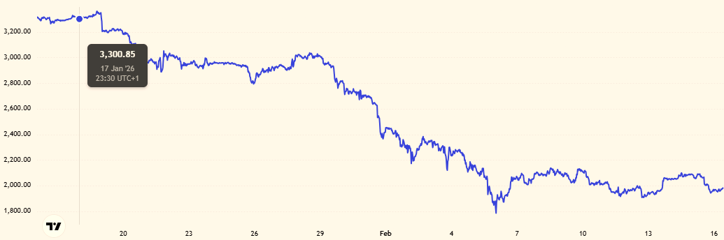 16 Feb 2026 Marché 2026 - Semaine 7 Valorisation de Bitcoin sur 1 mois Données actualisées au 16 janvier 2026 Valorisation d'Ethereum sur 1 mois Données actualisées au 16 janvier 2026 Capitalisation des stablecoins Euro Données actualisées au 16 janvier 2026 Actifs sous gestion des ETF Bitcoin Données actualisées au 16 janvier 2026 Rendement des stablecoins en DeFi Données actualisées au 16 janvier 2026 Etat des Indicateurs On Chain Données actualisées au 16 janvier 2026 Written by: Frédéric Juret-Rafin Member discussion: