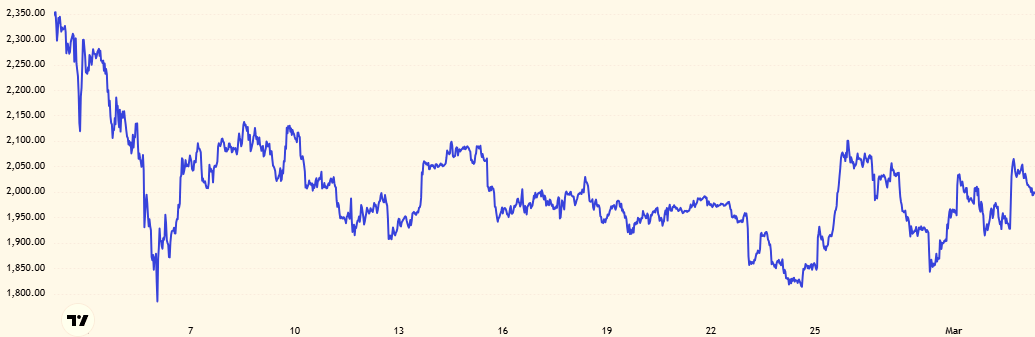 04 Mar 2026 Marché 2026 - Semaine 9 Valorisation de Bitcoin sur 1 mois Données actualisées au 3 mars 2026 Valorisation d'Ethereum sur 1 mois Données actualisées au 3 mars 2026 Capitalisation des stablecoins Euro Données actualisées au 3 mars 2026 Actifs sous gestion des ETF Bitcoin Données actualisées au 3 mars 2026 Rendement des stablecoins en DeFi Données actualisées au 3 mars 2026 Etat des Indicateurs On Chain Données actualisées au 3 mars 2026Cliquez sur l'illustration pour accéder au site Written by: Frédéric Juret-Rafin Member discussion: