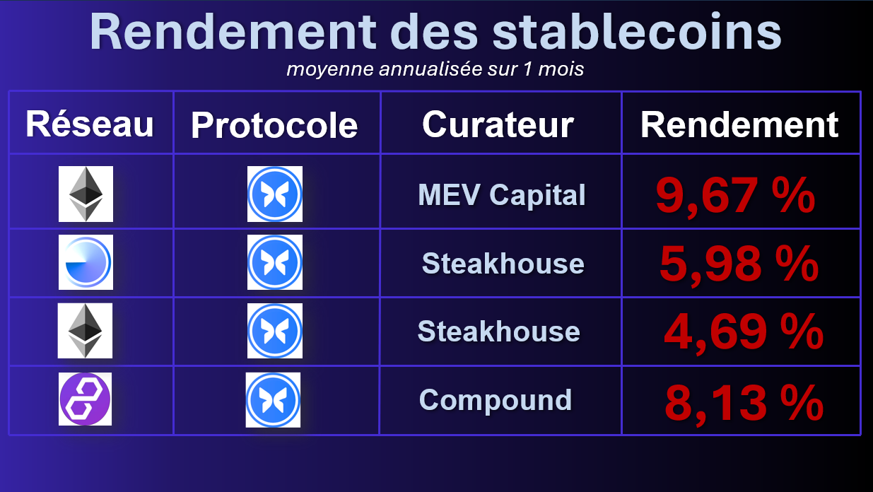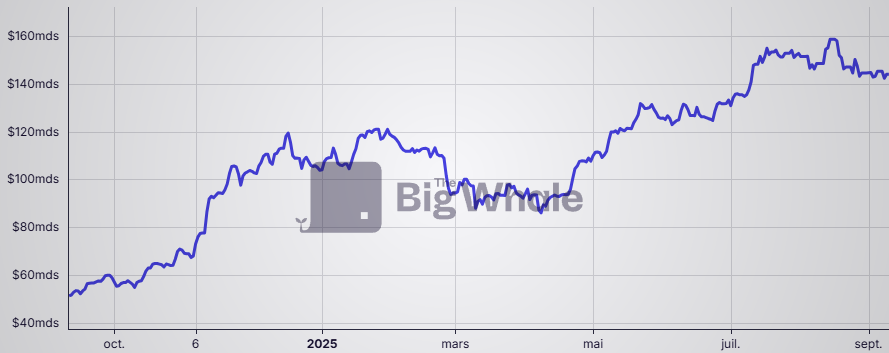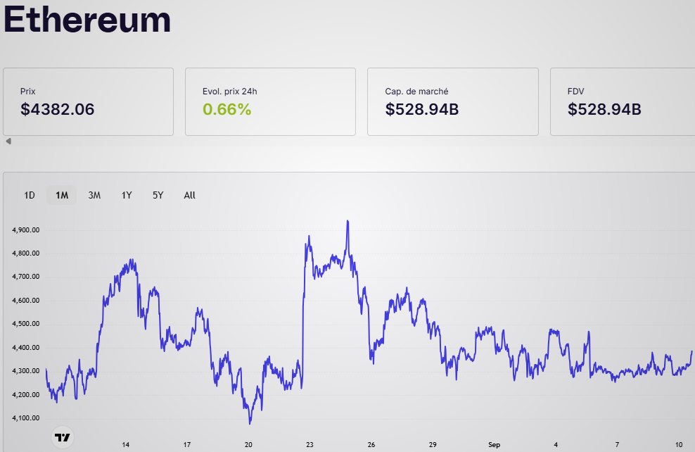 10 Sep 2025 Marché Etat du Marché Crypto (36) Valorisation de Bitcoin sur 1 mois Valorisation d'Ethereum sur 1 mois Capitalisation des stablecoins Actifs sous gestion des ETF Bitcoin Rendement des stablecoins en DeFi Etat des Indicateurs On Chain Written by: Frédéric Juret-Rafin Member discussion: