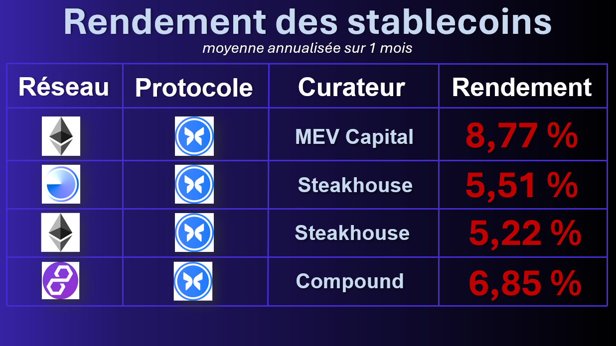 08 Oct 2025 Marché Etat du Marché Crypto (40) Valorisation de Bitcoin sur 1 mois Valorisation d'Ethereum sur 1 mois Capitalisation des stablecoins Actifs sous gestion des ETF Bitcoin Rendement des stablecoins en DeFi Etat des Indicateurs On Chain Written by: Frédéric Juret-Rafin Member discussion: