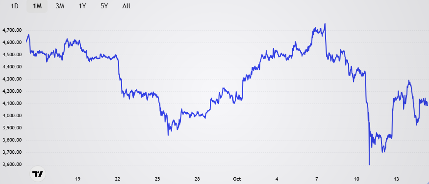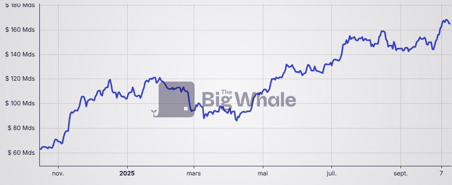 15 Oct 2025 Marché Etat du Marché Crypto (41) Valorisation de Bitcoin sur 1 mois Valorisation d'Ethereum sur 1 mois Capitalisation des stablecoins Actifs sous gestion des ETF Bitcoin Rendement des stablecoins en DeFi Etat des Indicateurs On Chain Written by: Frédéric Juret-Rafin Member discussion: