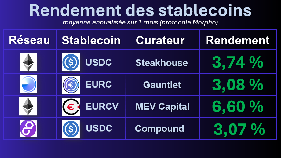 - Les stablecoins en euro dépassent 1 milliard de dollars en valeur, principalement grâce à la croissance de l’EURC qui compte désormais plus de 150.000 détenteurs.