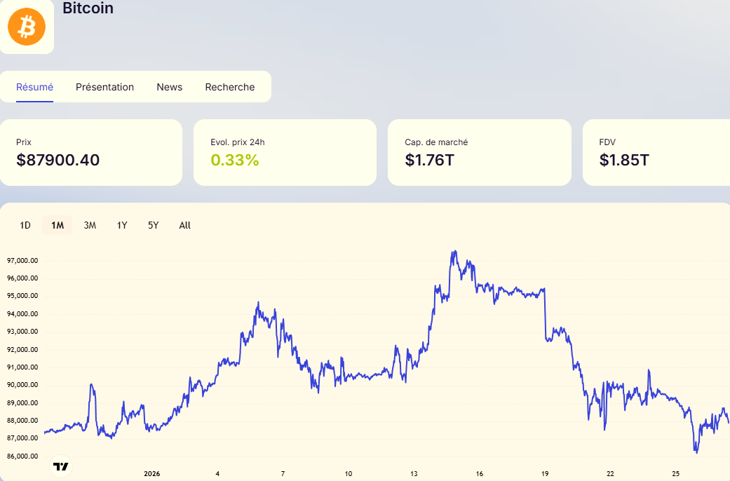 Cette semaine, Bitcoin a amplifié sa correction et navigue actuellement dans la partie inférieure de son range. Pendant ce temps, sous la double impulsion de la poursuite des tensions macro et de l'effondrement du dollar, l'or poursuit sa poussée haussière en testant les 5.100 $ à l'écriture de ces lignes. Si la décision de politique monétaire du 28 janvier ne devrait pas changer fondamentalement la donne, le marché est dans l'attente des résultats des Mag 7 qui continuent de driver l'évolution du SP500. Dans ce contexte, les ETF BTC subissent une légère décollecte.