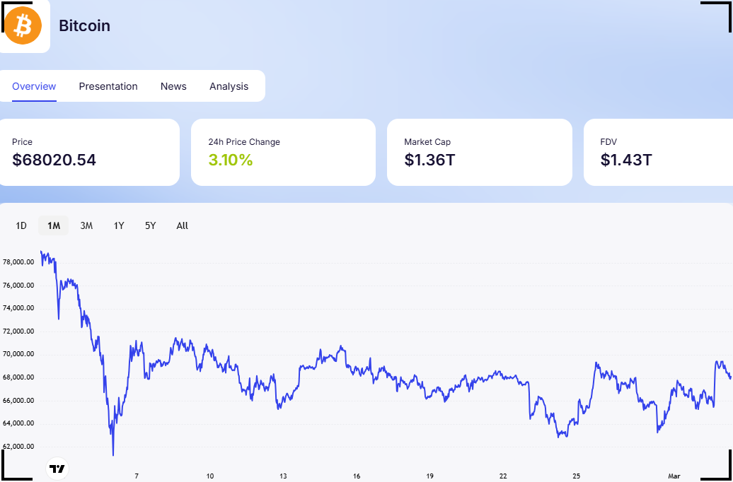 Evolution du cours de Bitcoin sur 1 mois