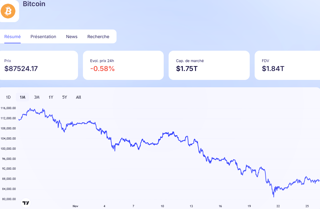 Le marché semble s'être stabilisé depuis quelques séances alors que le programme de quantitative easing de la Fed prend fin. Parallèlement, le dollar donne des signes de faiblesse ce qui relance le M2. Pendant ce temps, la probabilité d'une nouvelle baisse des taux de la Fed en décembre augmente significativement. Les conditions d'une reprise semblent donc être réunies. Les ETF Bitcoin, quant à eux, sont repassés en phase de collecte.