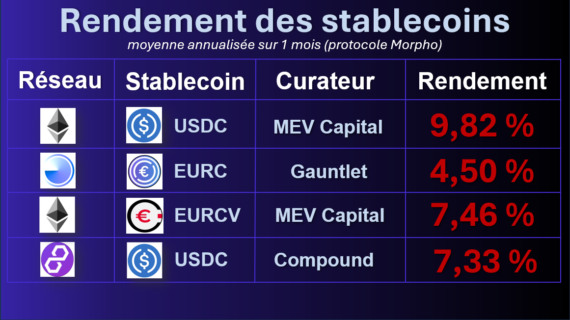 - Le stablecoin SyrupUSDC de Maple Finance sera prochainement listé sur Aave V3. Pour rappel, ce stablecoin est adossé à des fonds institutionnels et des créances d'entreprises privées et, de ce fait, produit du rendement.